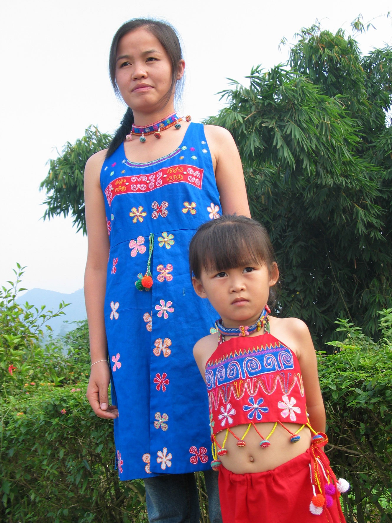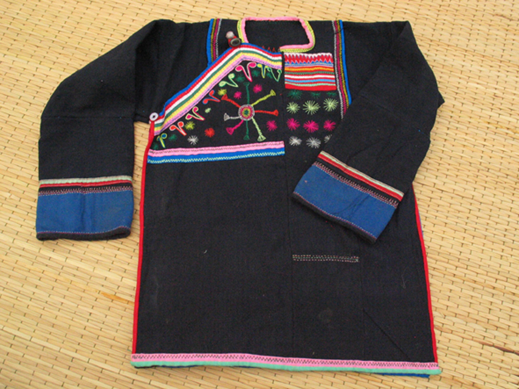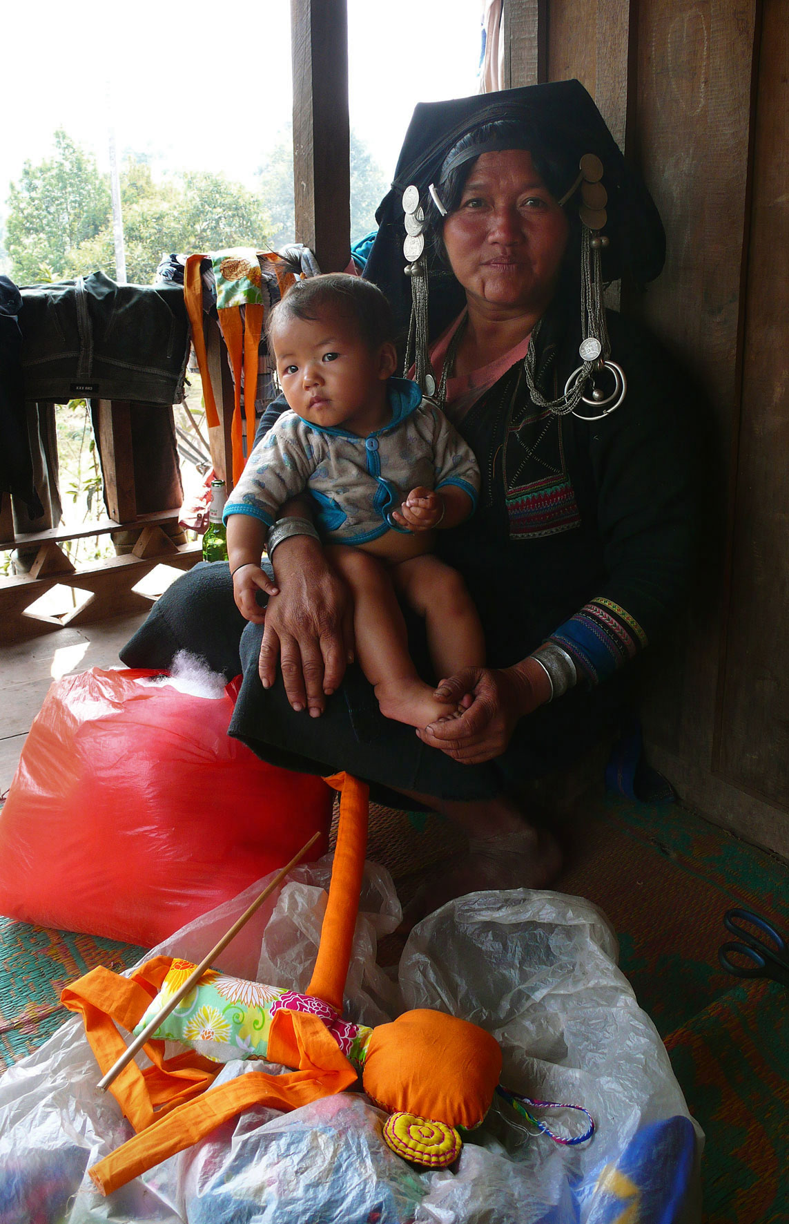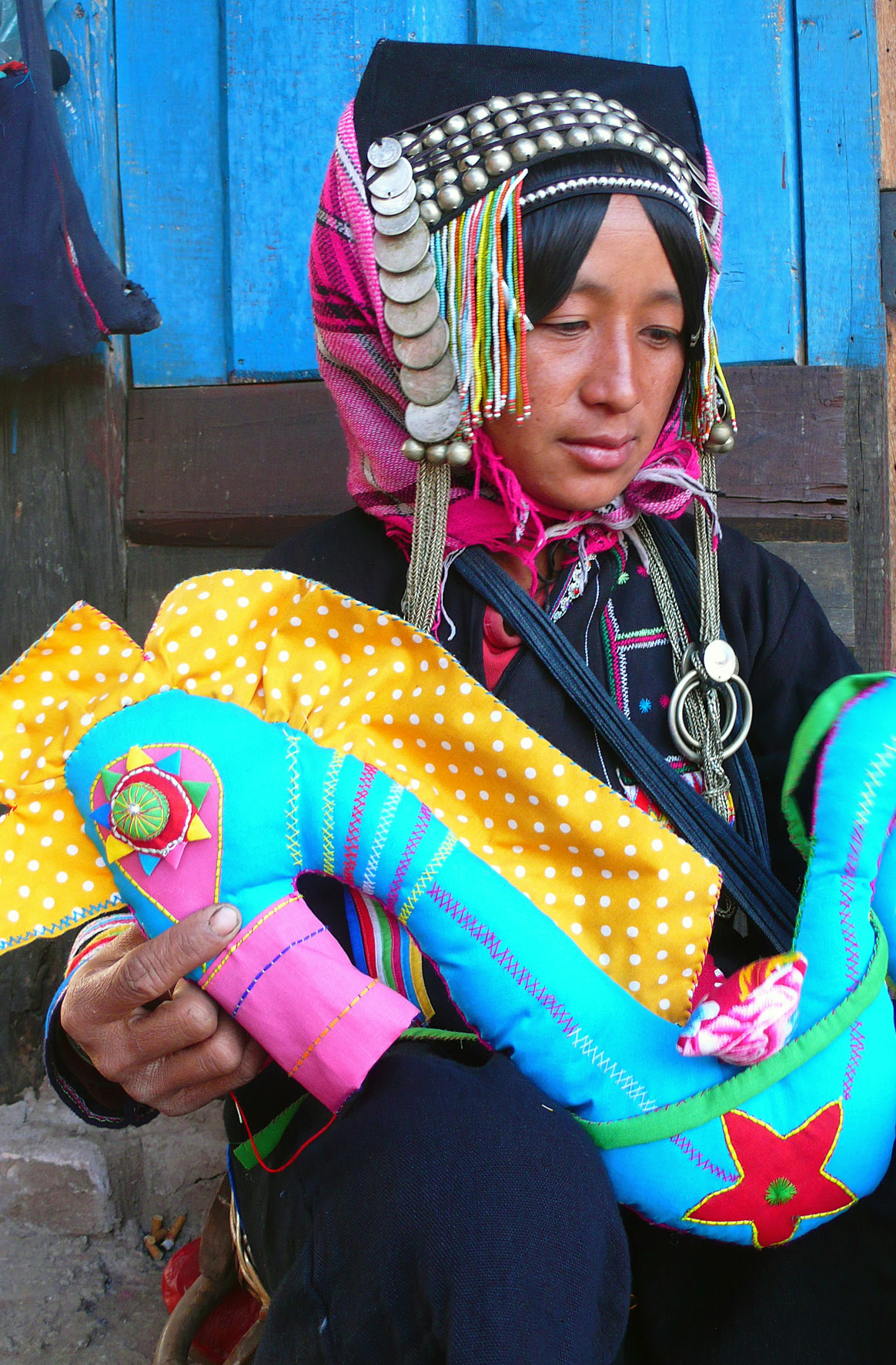 Les femmes Akha se reconnaissent facilement à leur costume. Leurs longues tuniques noires sont décorées de broderies, perles, pièces de monnaie et de différentes babioles.