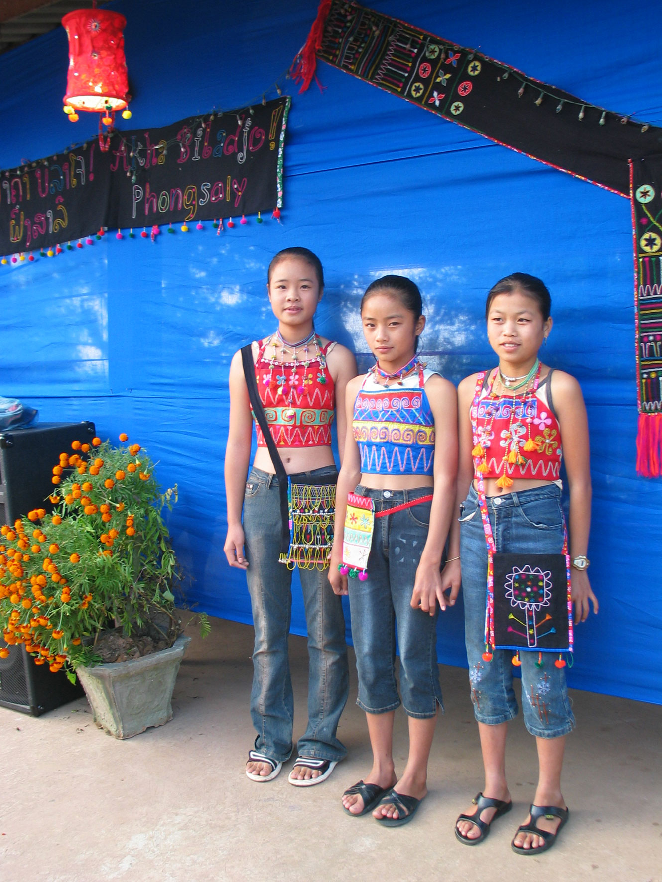 « Novembre 2004, c’est la date de notre première foire d’artisanat à Vientiane et de notre premier défilé de mode à Phongsaly. C’est aussi la rencontre avec Toune qui deviendra notre ambassadrice au Laos pour la promotion des créations Akha Biladjo ! »
