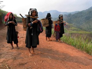 Montagnards du nord Laos, les Akha ont longtemps pratiqué une agriculture itinérante complétée par la chasse et la cueillette dans un système d’autosuffisance. Au début des années 2000, les Akha se sont rapprochés des plaines, incités par le gouvernement laotien à cultiver la canne à sucre. Les femmes Akha ont dès lors commencé à venir sur les marchés pour vendre leur production de légumes.