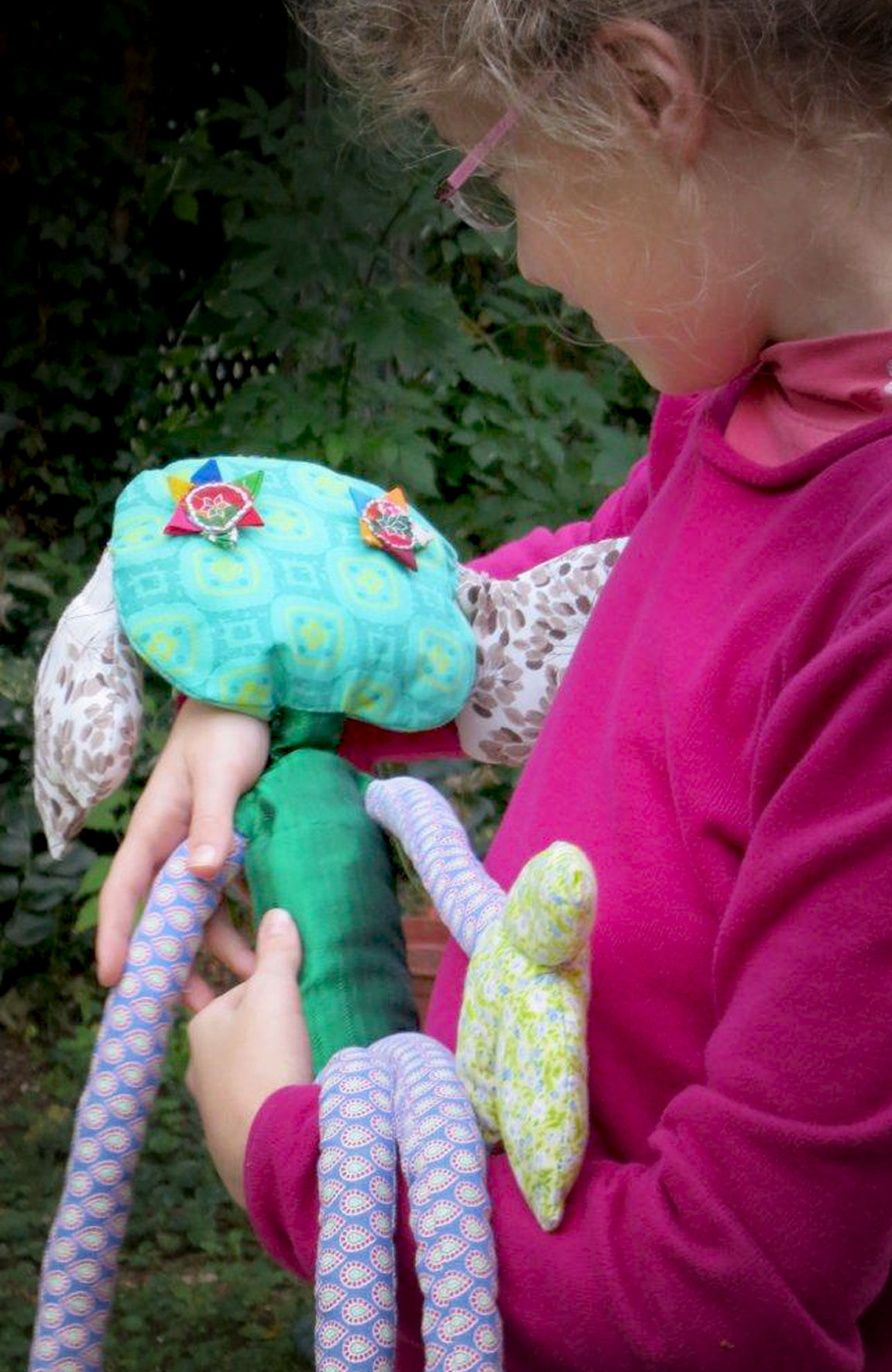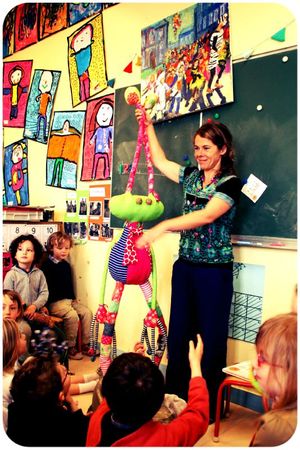 Nous allons à la rencontre des enfants, dans les écoles, les librairies et bibliothèques pour les faire couper, coller, colorier, et coudre… mais aussi et surtout pour les faire rêver, créer, inventer, et imaginer avec peu de choses un monde qui leur soit précieux.