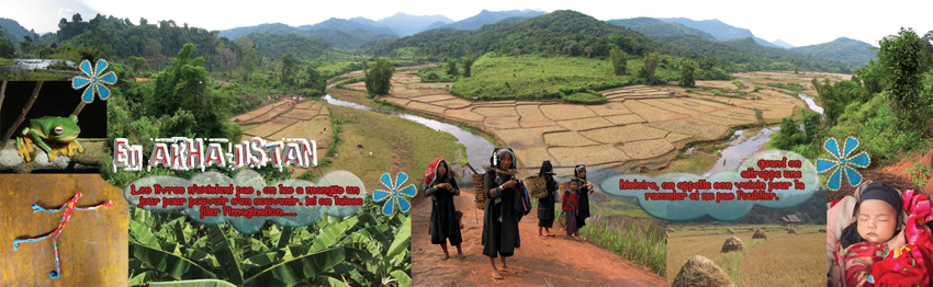 « J’ai rencontré les Akha en 2002, dans la région de Muang Sing, elles m’ont touchée par leur fantaisie… De retour au Laos en 2005, bien décidée à collecter des histoires traditionnelles dans quelques villages….je me confronte immédiatement à l’abime des traductions, les histoires se ternissent et surtout leur poésie s’envole.