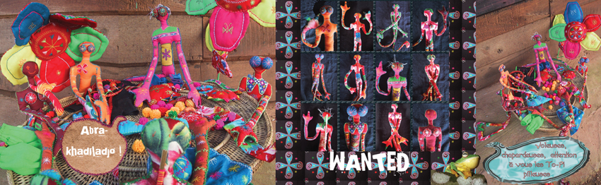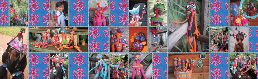 Entre 2006 et 2011, je vais imaginer et broder une série de bestioles avec l’assocation Akha Biladjo ! Les To-pi seront les premiers personnages en volume réalisés avec les femmes Akha dont nous raconterons l’histoire. »