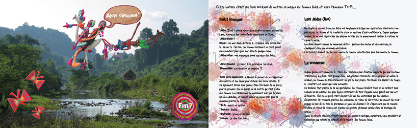 La rencontre avec Cécile et les femmes Akha à Boun Neua, fera basculer les histoires en volume et les personnages brodés seront alors confiés à des mélangeuses de couleurs épatantes.